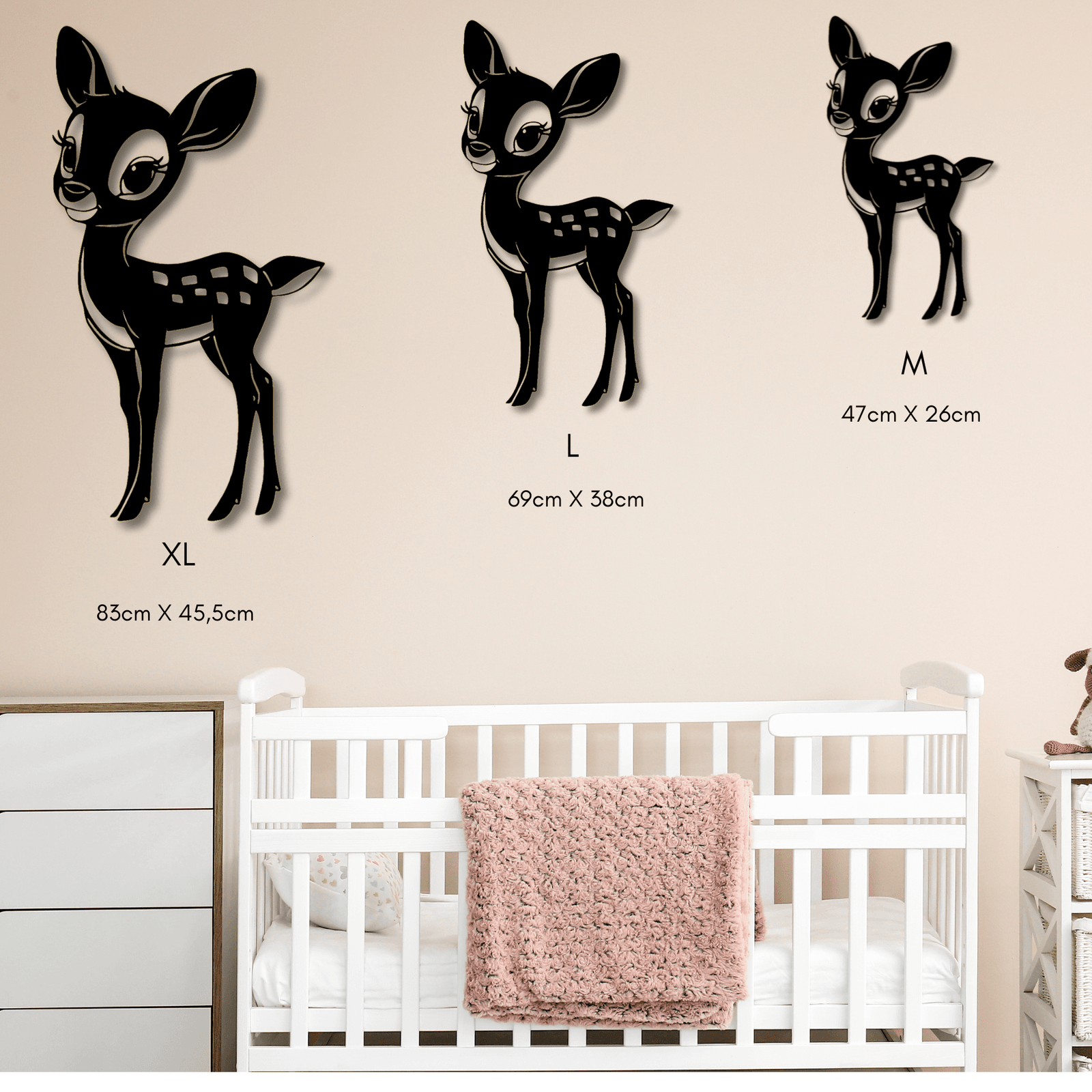 Disponible en tres tamaños (M, L y XL), esta pieza se adapta a cualquier espacio, permitiendo crear un rincón acogedor y lleno de magia. Perfecto para una decoración que inspire dulzura y sensibilidad, el cuadro de Bambi se convierte en una pieza central que los acompañará en sus primeros años de descubrimiento.