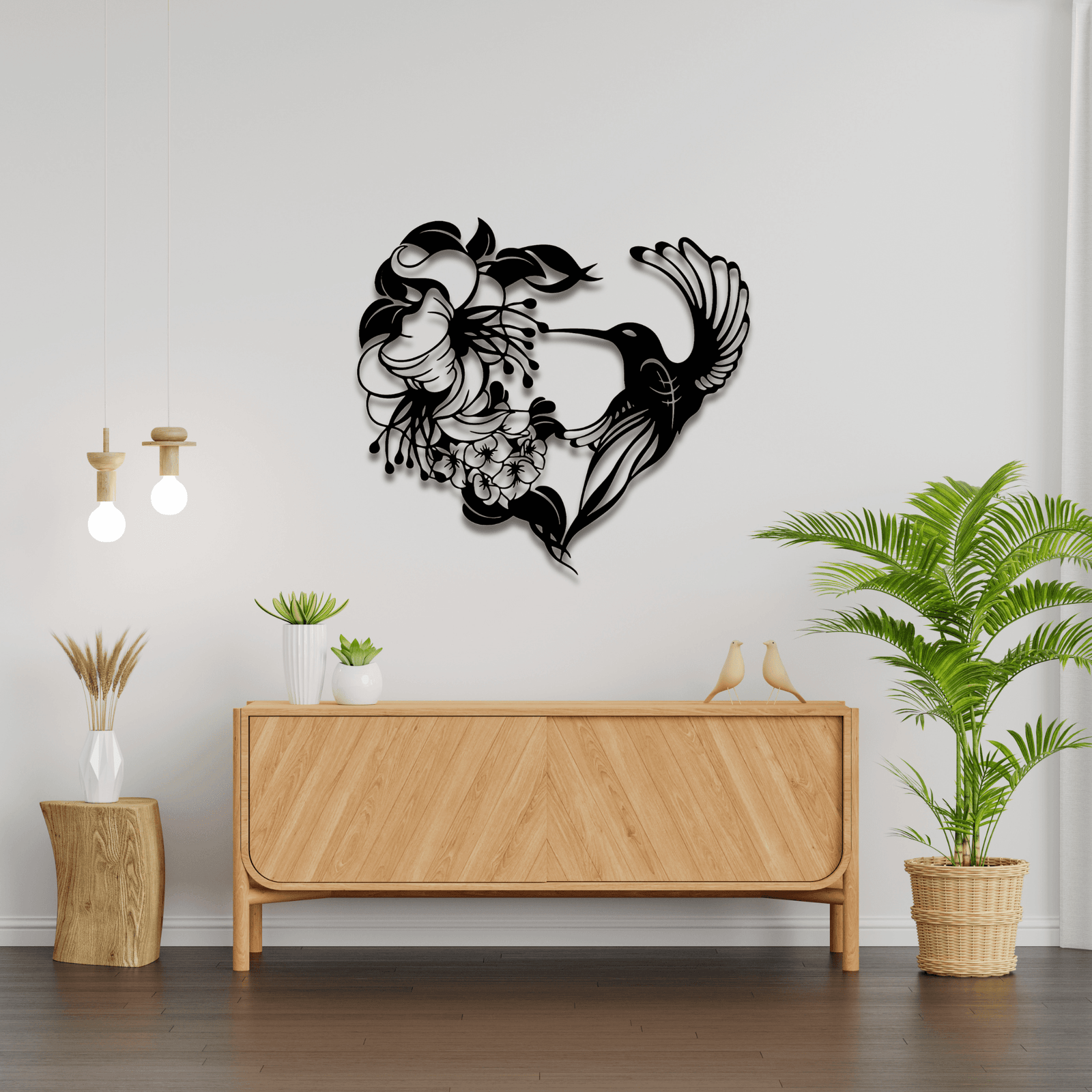 - Diseño en relieve 3D: El colibrí y las flores cobran vida con una ligera profundidad que añade dimensión al espacio.