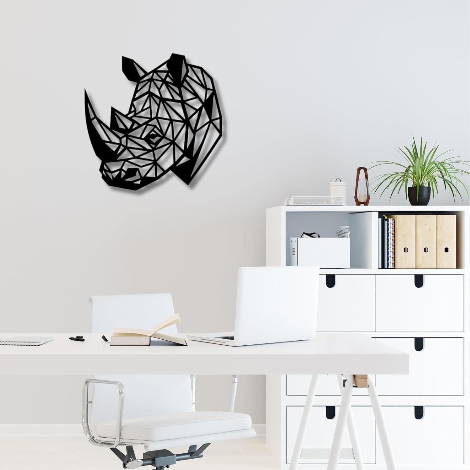 Añade un toque de naturaleza salvaje y elegancia minimalista a tu hogar con nuestro impresionante cuadro de silueta de rinoceronte en 3D. Este diseño moderno combina líneas limpias y detalles sutiles que capturan la fuerza y majestuosidad de uno de los animales más imponentes del mundo. Ideal para quienes buscan una pieza de arte única que destaque en cualquier ambiente, desde salones hasta dormitorios o incluso oficinas.