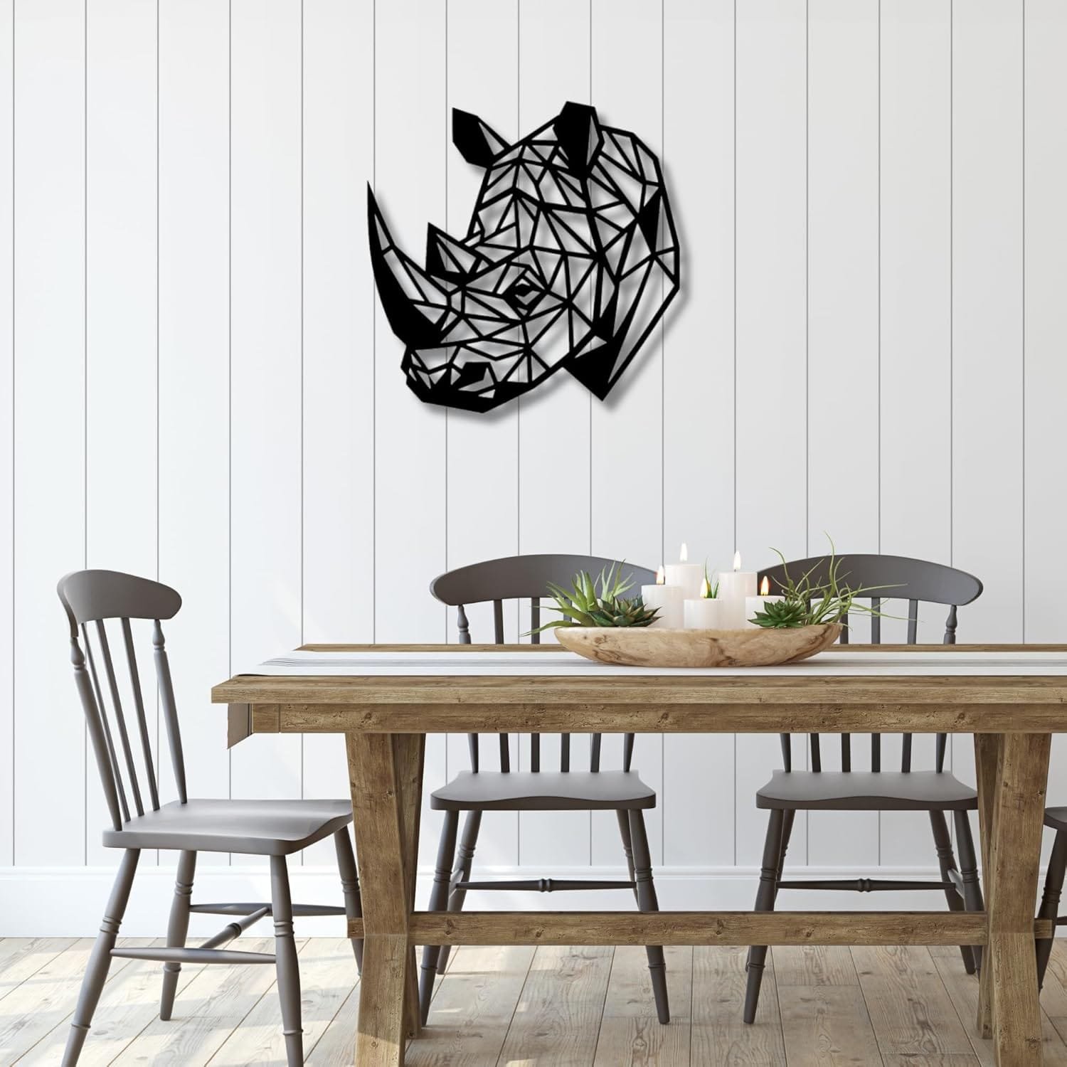 Cuadro de Silueta de Rinoceronte en 3D – Arte Minimalista para la Decoración Moderna del Hogar
