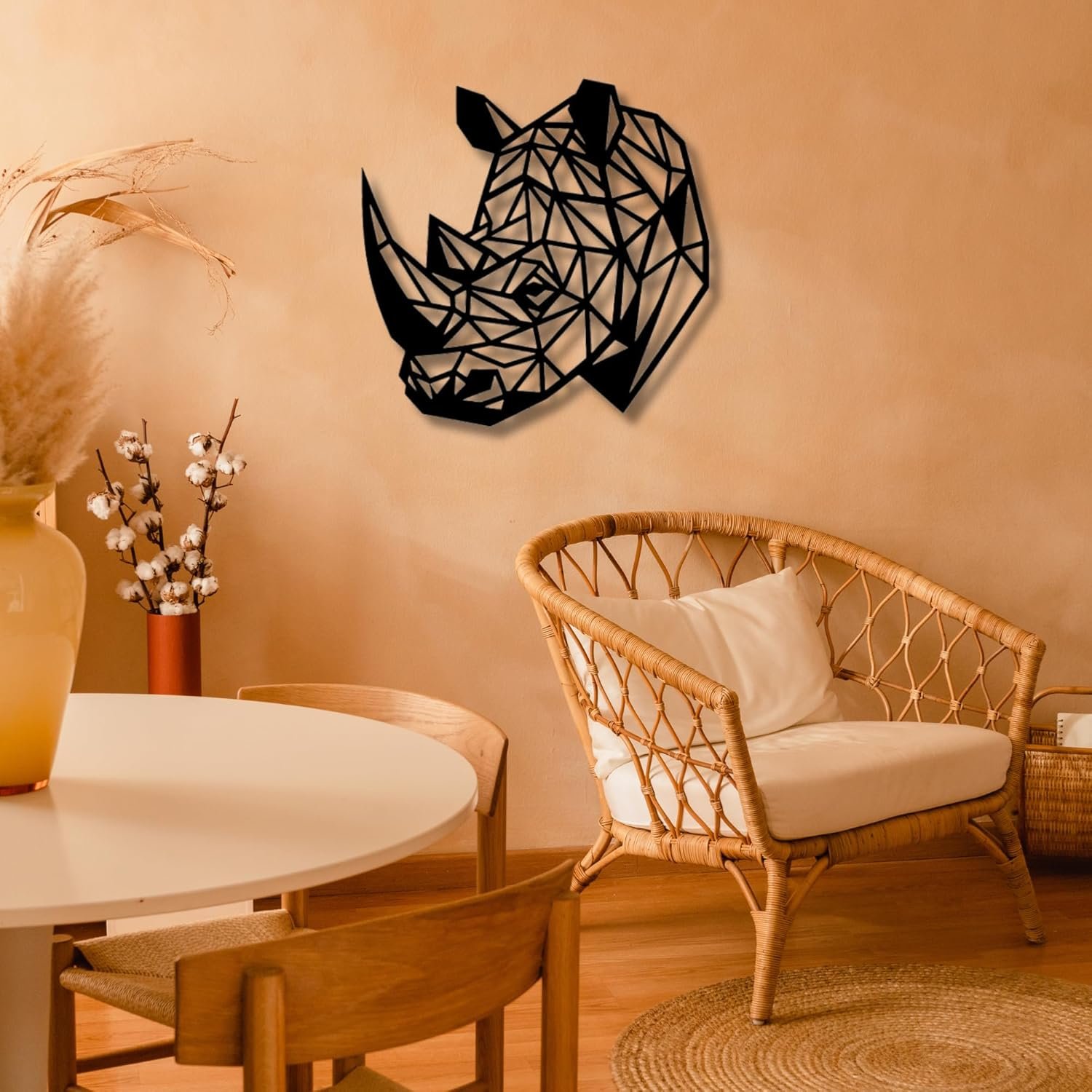 - Diseño 3D moderno: La silueta del rinoceronte aporta una estética contemporánea con un toque natural.