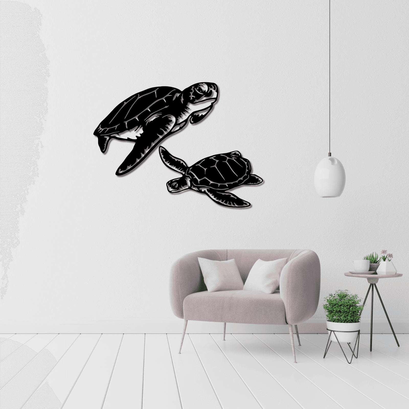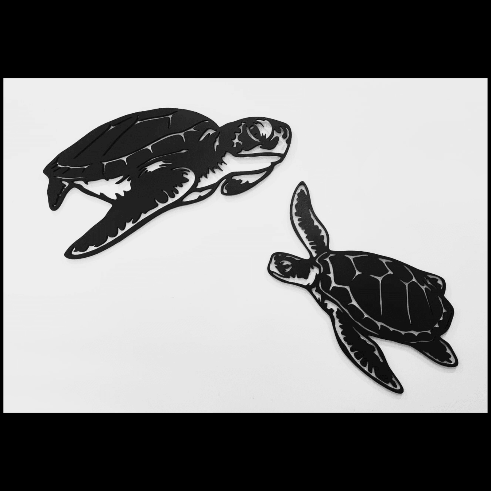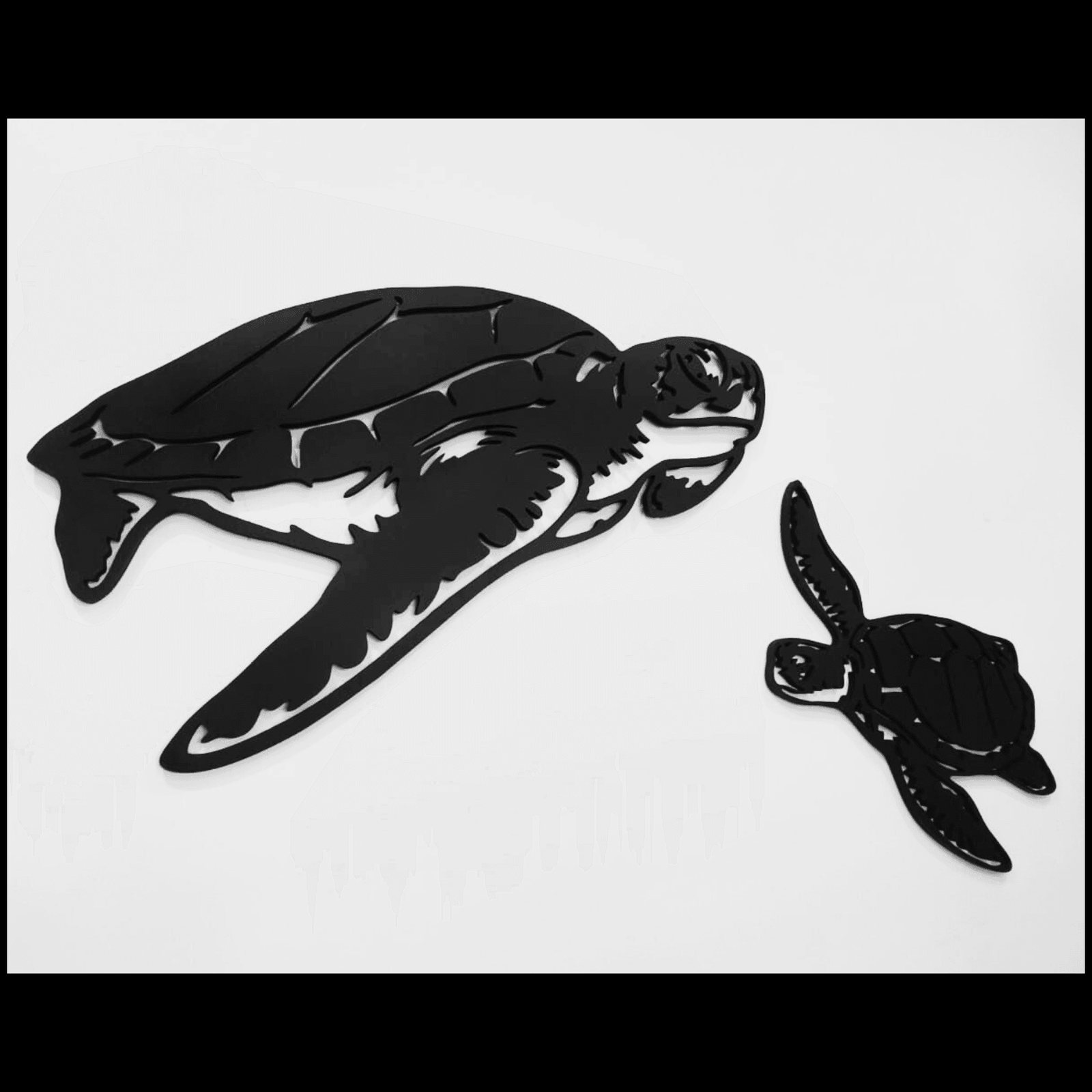 - Diseño natural y detallado: Las tortugas están representadas en un estilo elegante que captura su movimiento y gracia en el agua.