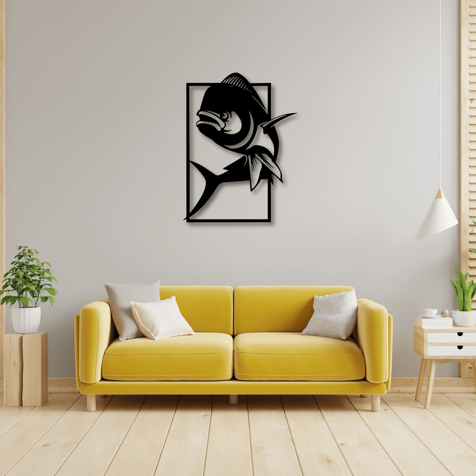 Cada curva y cada detalle del Pez Limón han sido diseñados con maestría, evocando la sensación de que está a punto de romper la barrera entre el arte y la realidad para sumergirse en tu espacio. Su estilo minimalista es una representación perfecta de la vida marina, combinando simplicidad y sofisticación. Esta pieza única no solo se limita a embellecer una pared; trae consigo una historia de aventura, de exploración de lo desconocido, y de la grandeza natural del océano.