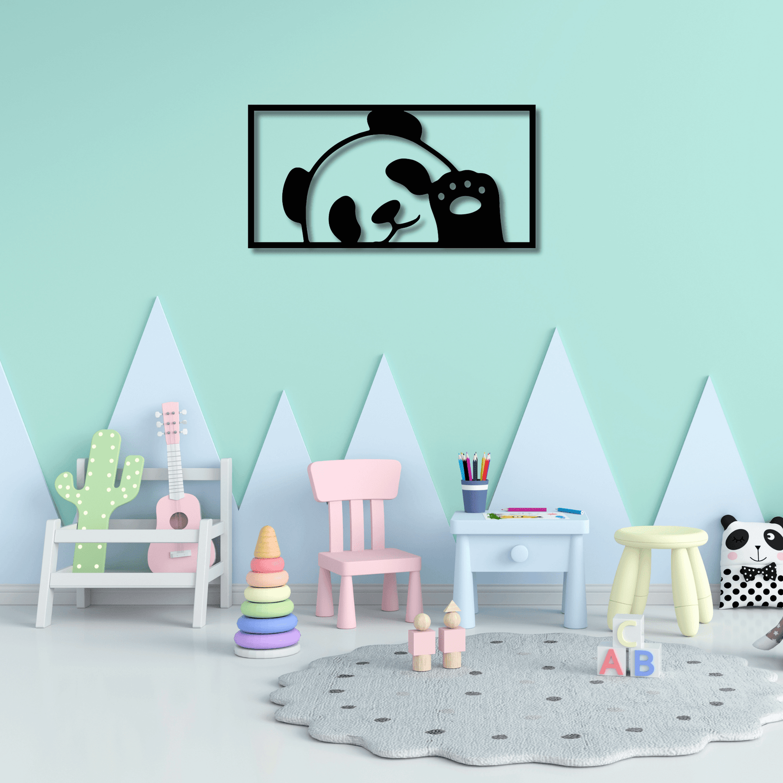 Un panda juguetón que llenará de ternura la habitación de tus pequeños, ideal para crear un espacio alegre y acogedor donde los sueños se encuentran con la aventura.»